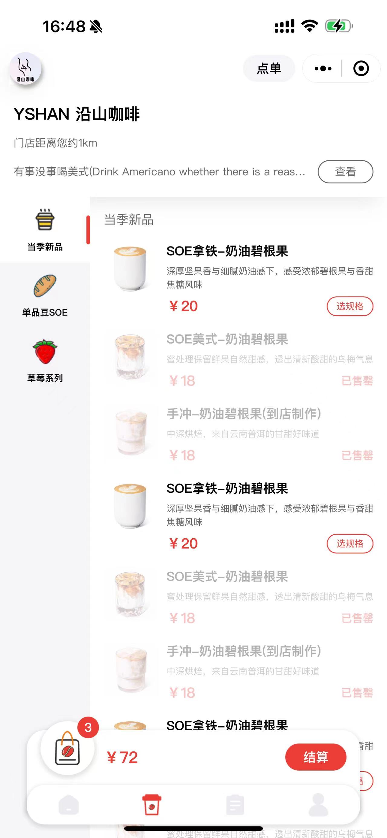 | 沿山咖啡 | 小程序点单平台 | WeChat Mini Program |