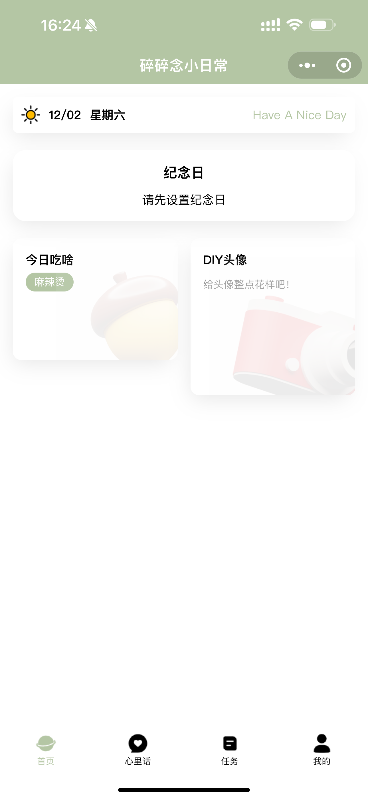 | 碎碎念小日常 | 心里话、情侣任务、情侣奖励 | WeChat Mini Program |